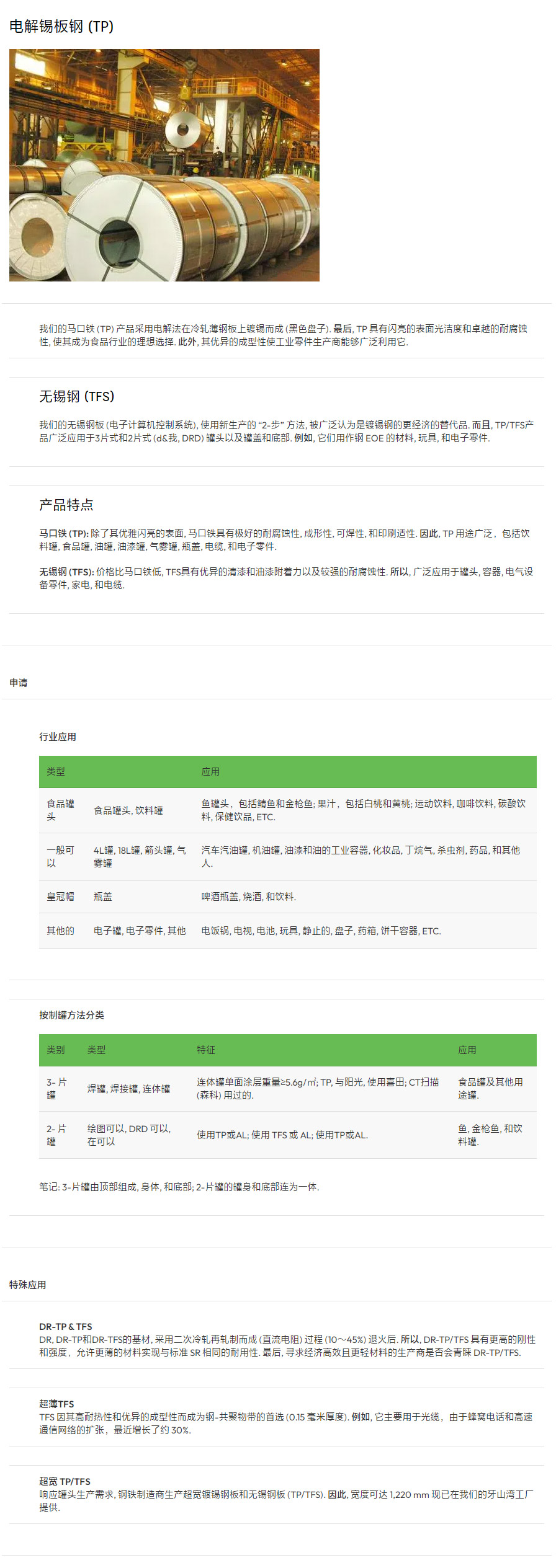 电解锡板钢 (TP)