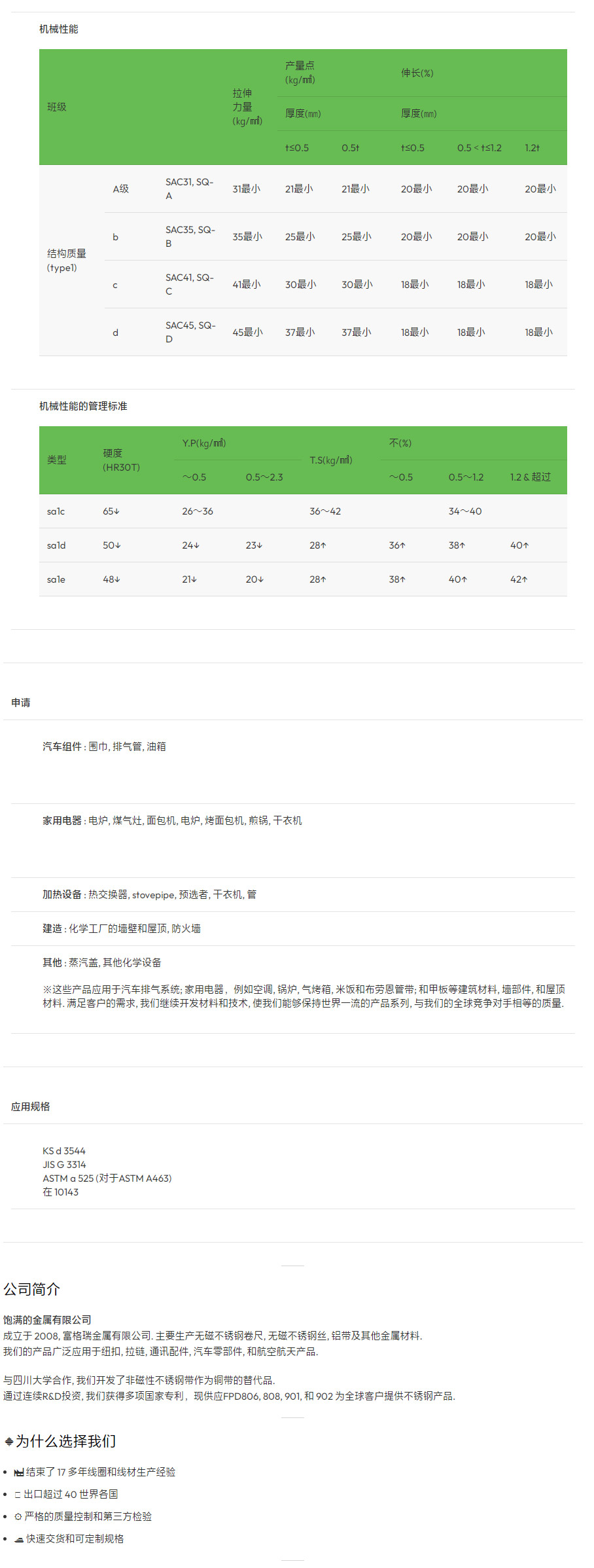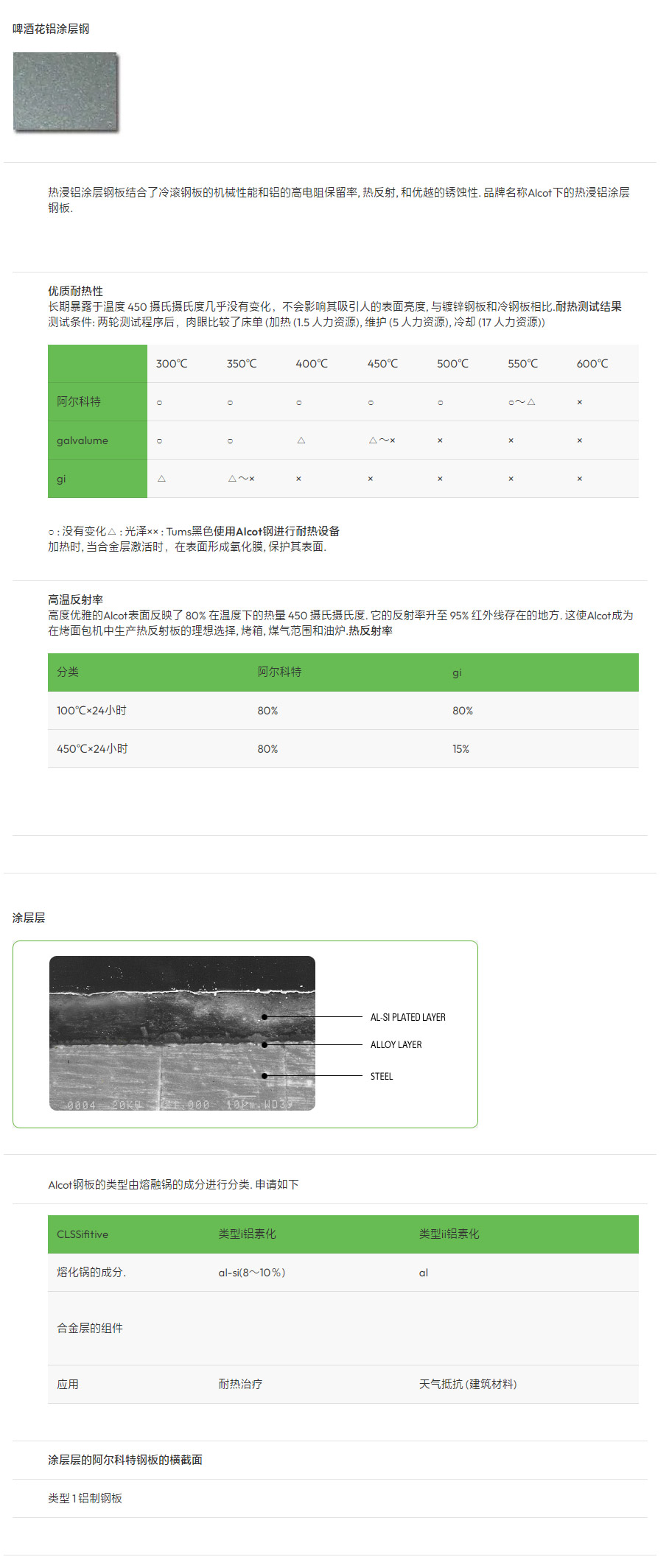 高质量 热浸镀铝钢 (sa1c, sa1d) 具有优越的耐腐蚀性, 热反射, 和耐用性. 屋顶的理想选择, 墙板, 产业结构, 和建筑应用. 可定制厚度和线圈长度.