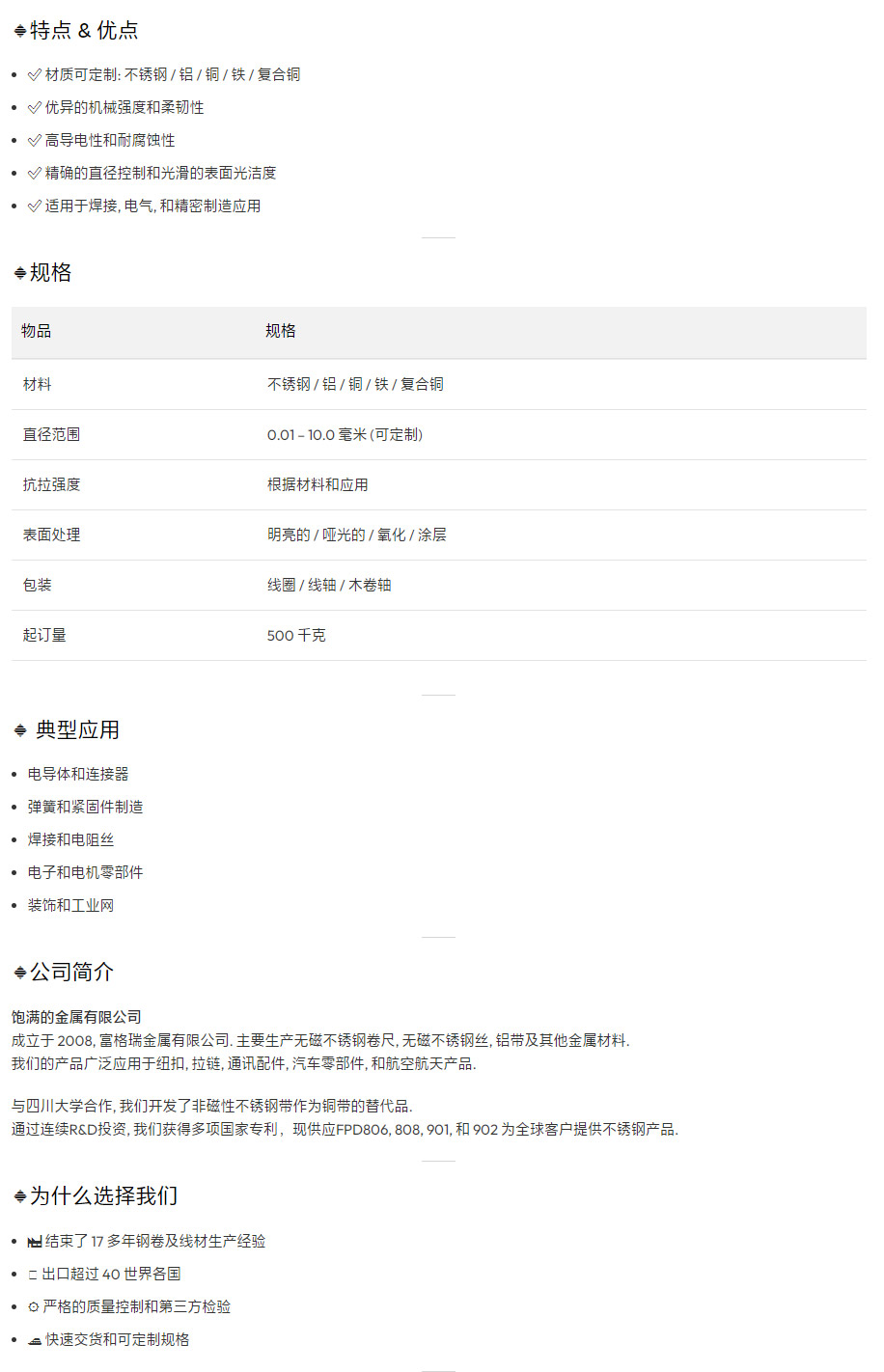 圆线 (不锈钢 / 铝 / 铜 / 铁 / 复合铜)